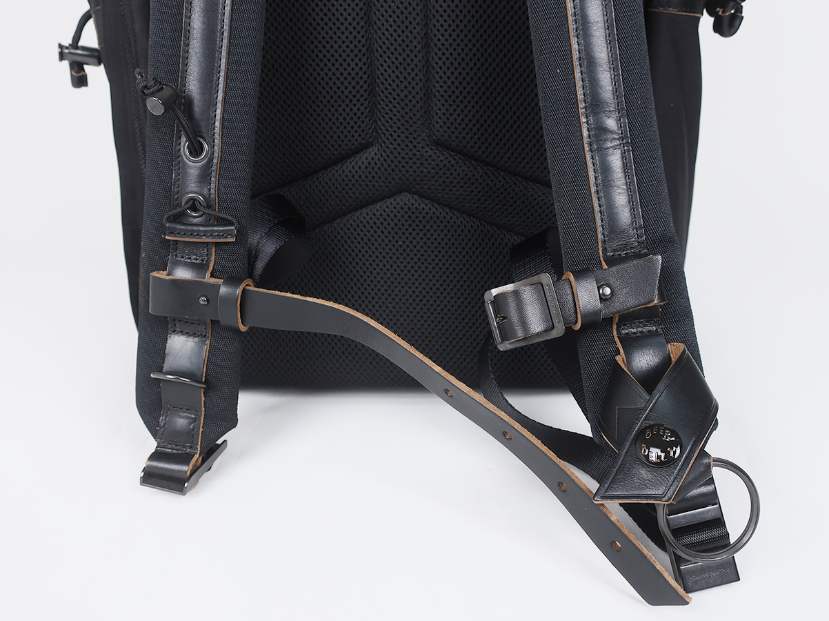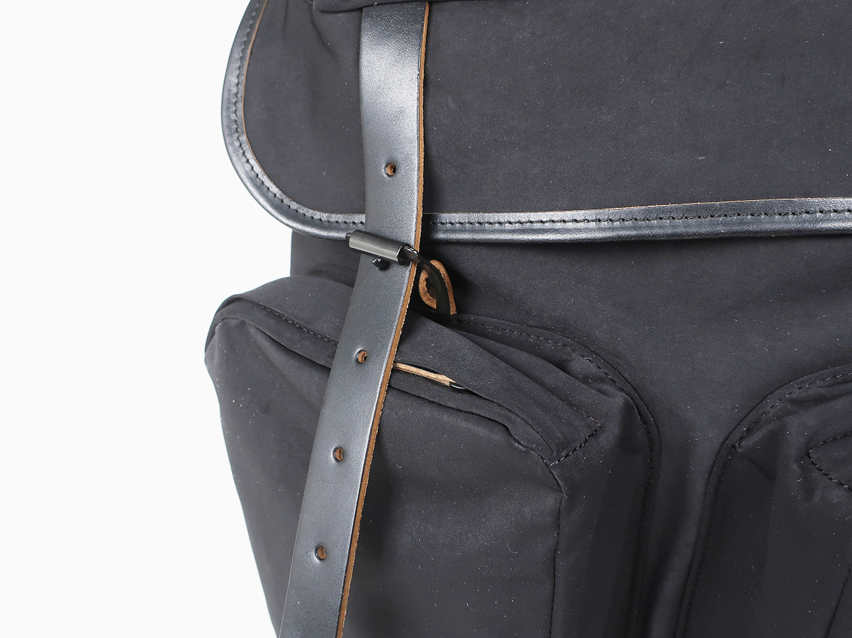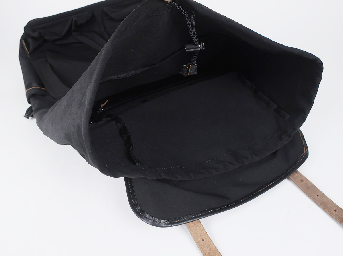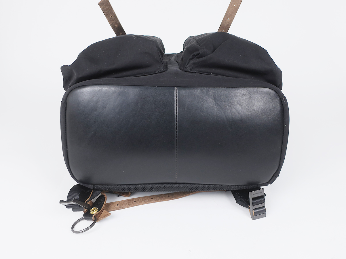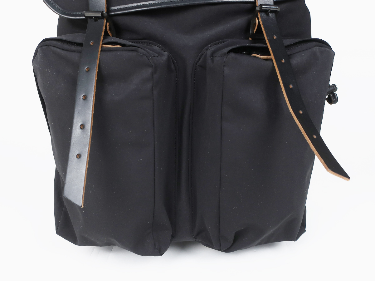 大容量で使い勝手の良い性能。素材による経年変化も楽しめるバックパックです。素材には超高密度ミリクロス生地が採用。ベルトや底にはローリングダブトリオのブーツでお馴染みのホースバットレザーが贅沢に使われております。バックルやボタンなどの留め具パーツにはブランドオリジナルの真鍮素材。