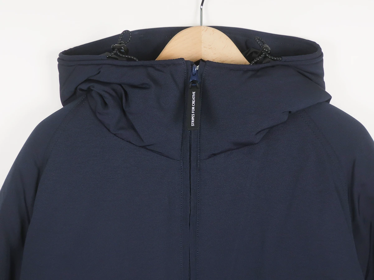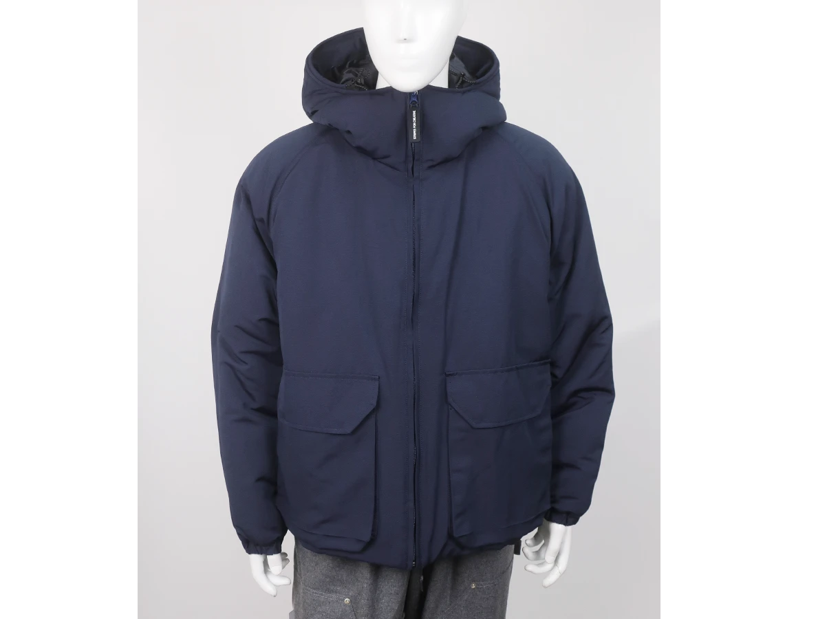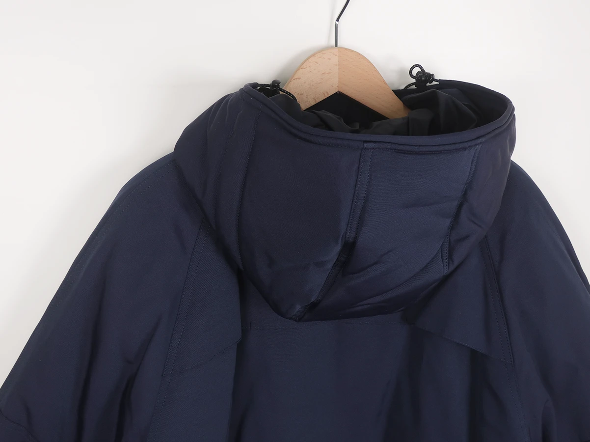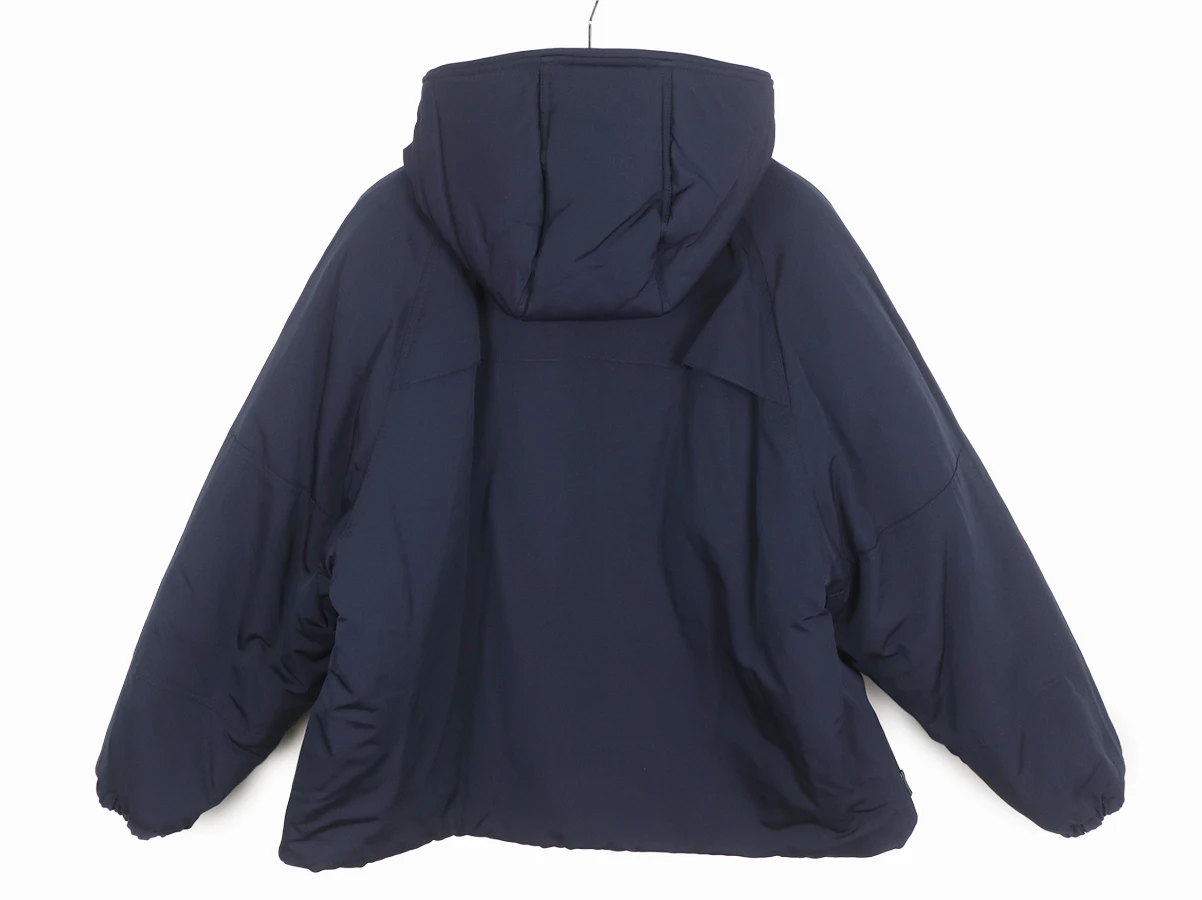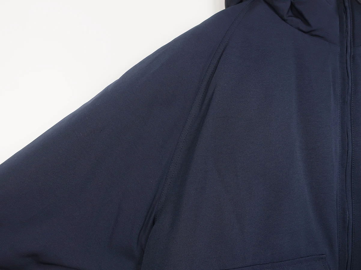 フロントのまち付きポケットや、背中側のベンチレーションなど、特徴的なディティールを持たせながらなシンプルに見えるバランスにこだわったオーバーサイズのグログランナイロン中綿HOODY JACKET。