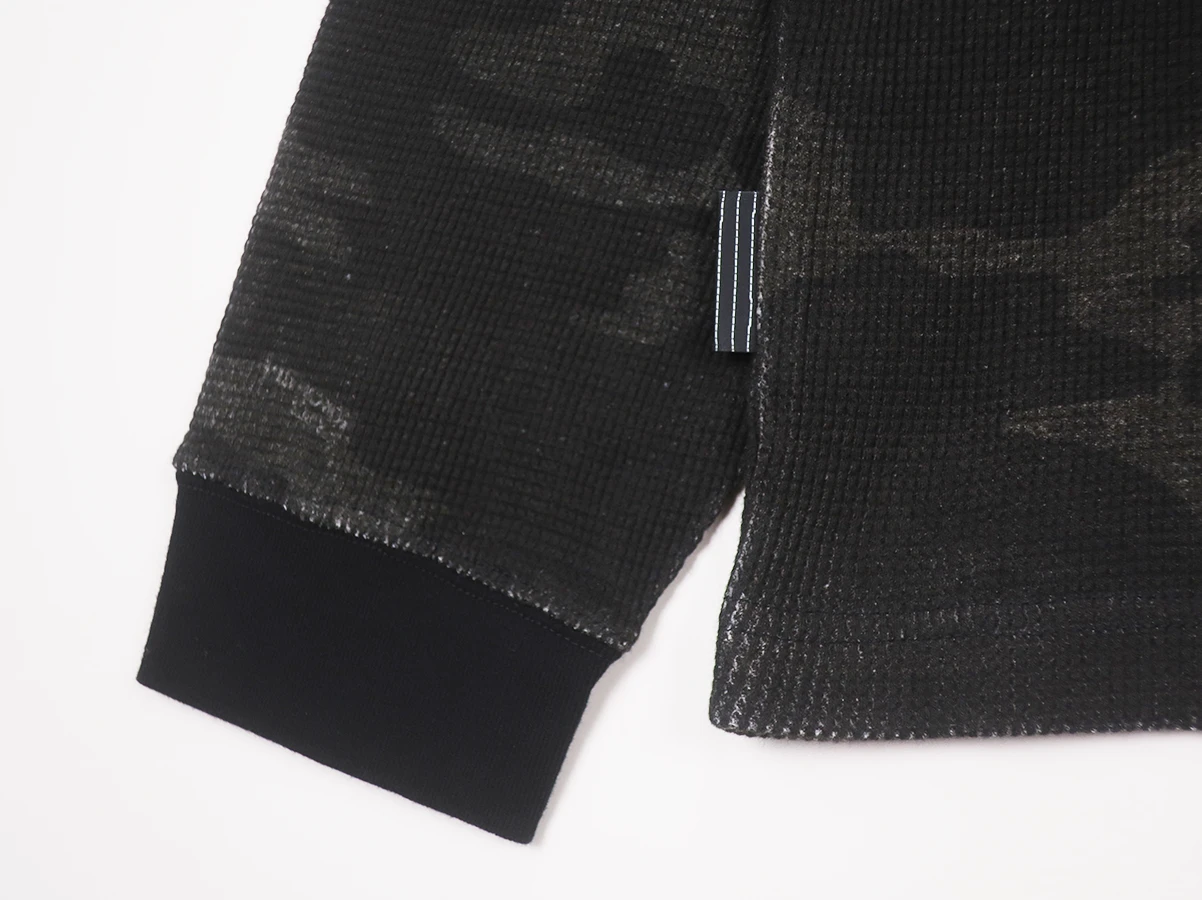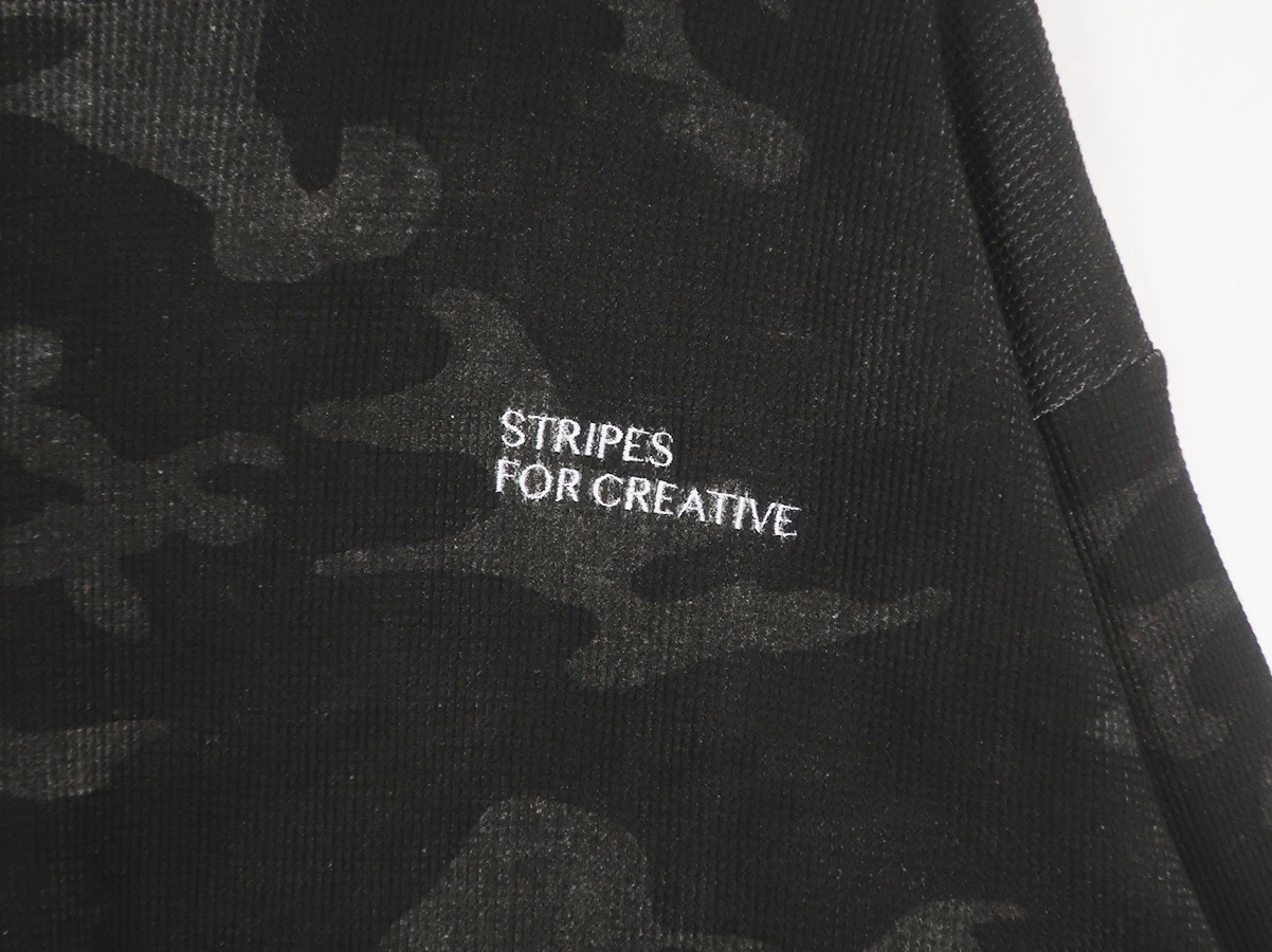 素材は度詰めで編み立てた肉感のあるワッフル素材を使用。カモ柄の中にひっそりとSFCロゴを忍ばせています。