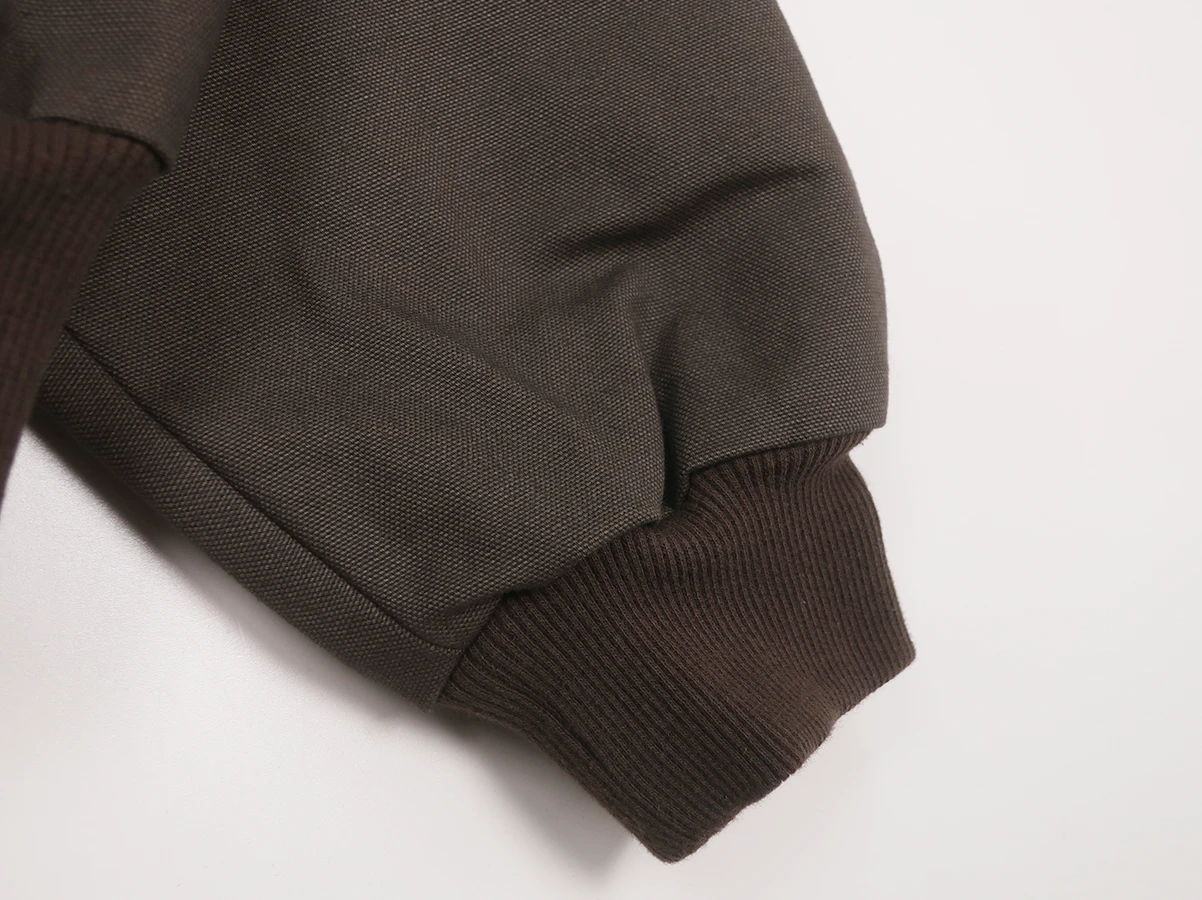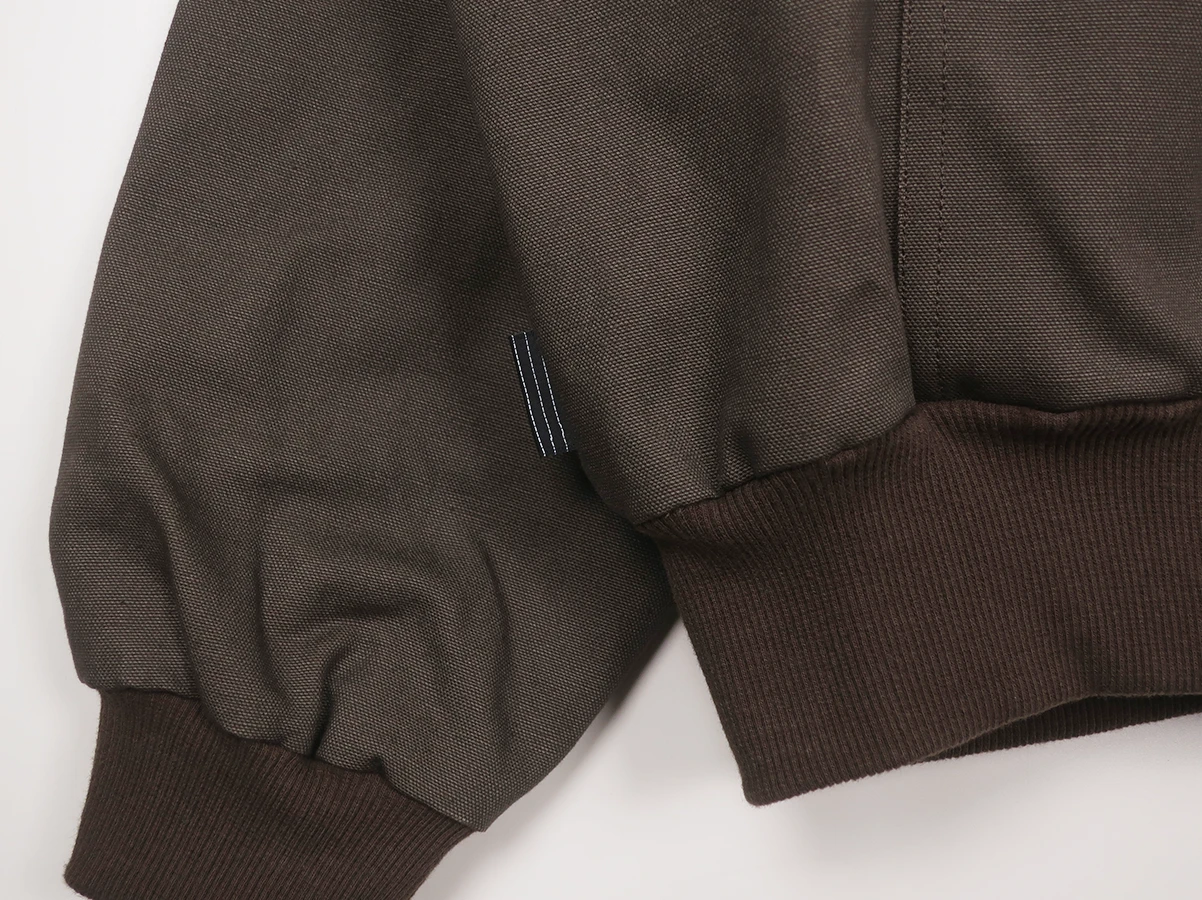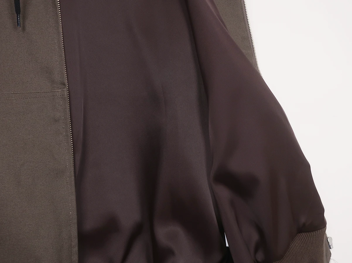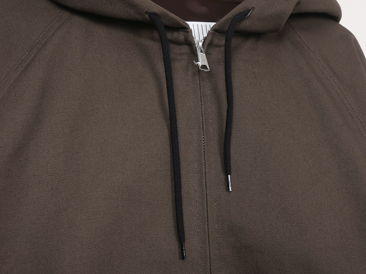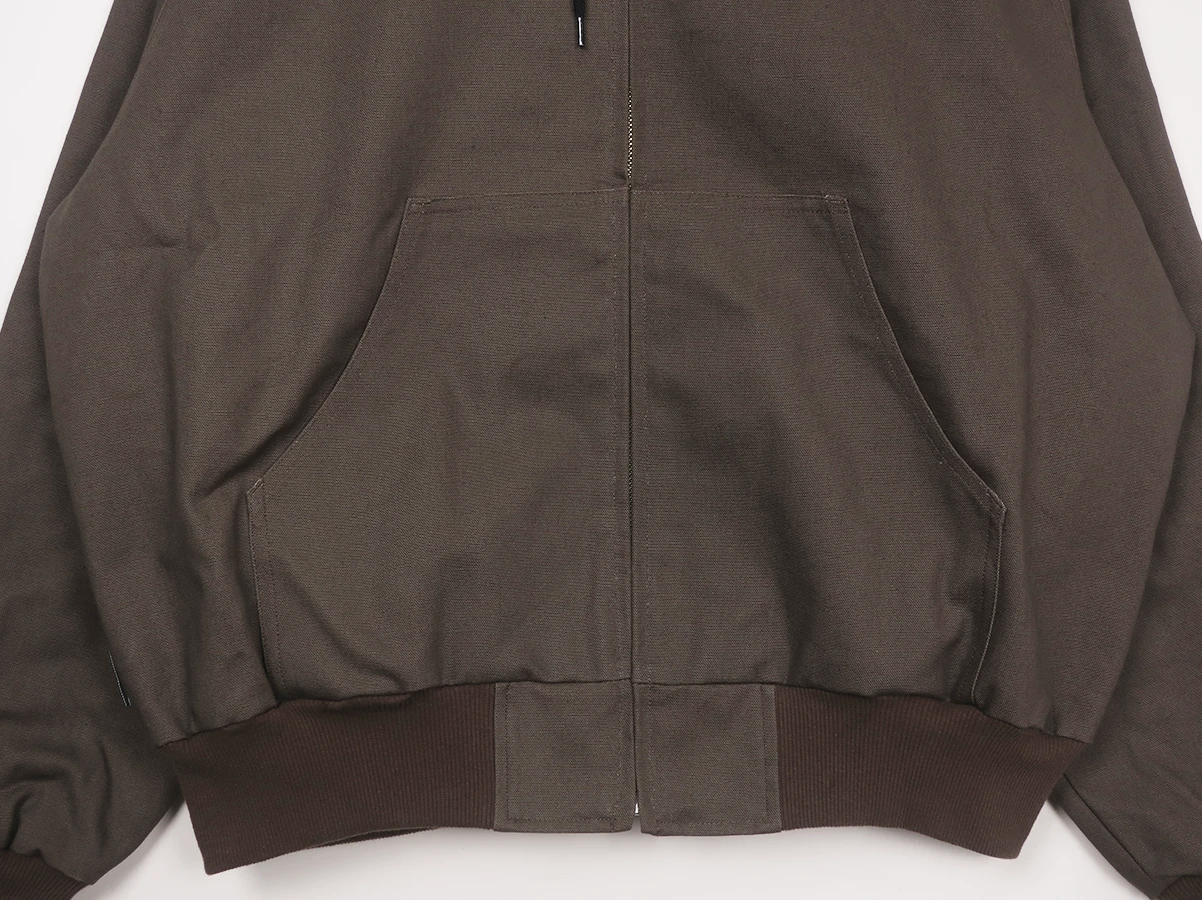 ワークジャケットでありながら、余計なディテールは取り除きクリーンなイメージに仕上げたオーバーサイズのダックフーディージャケット。