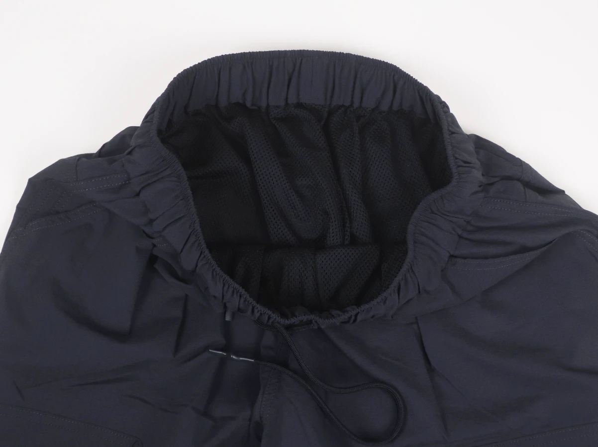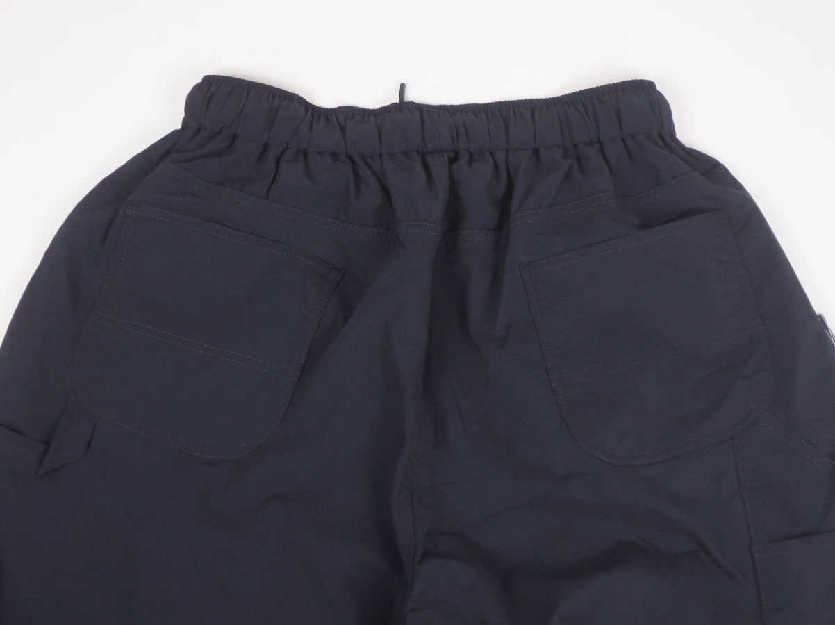 ベンチレーション付きのダブルニー仕様や、ハンマーループ、ツールポケットなどのワークパンツのディテールを取り入れたナイロンバギーパンツ。