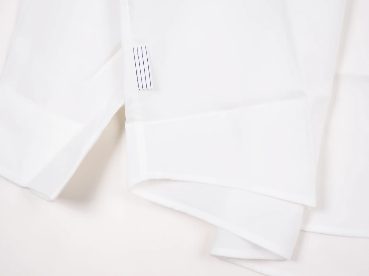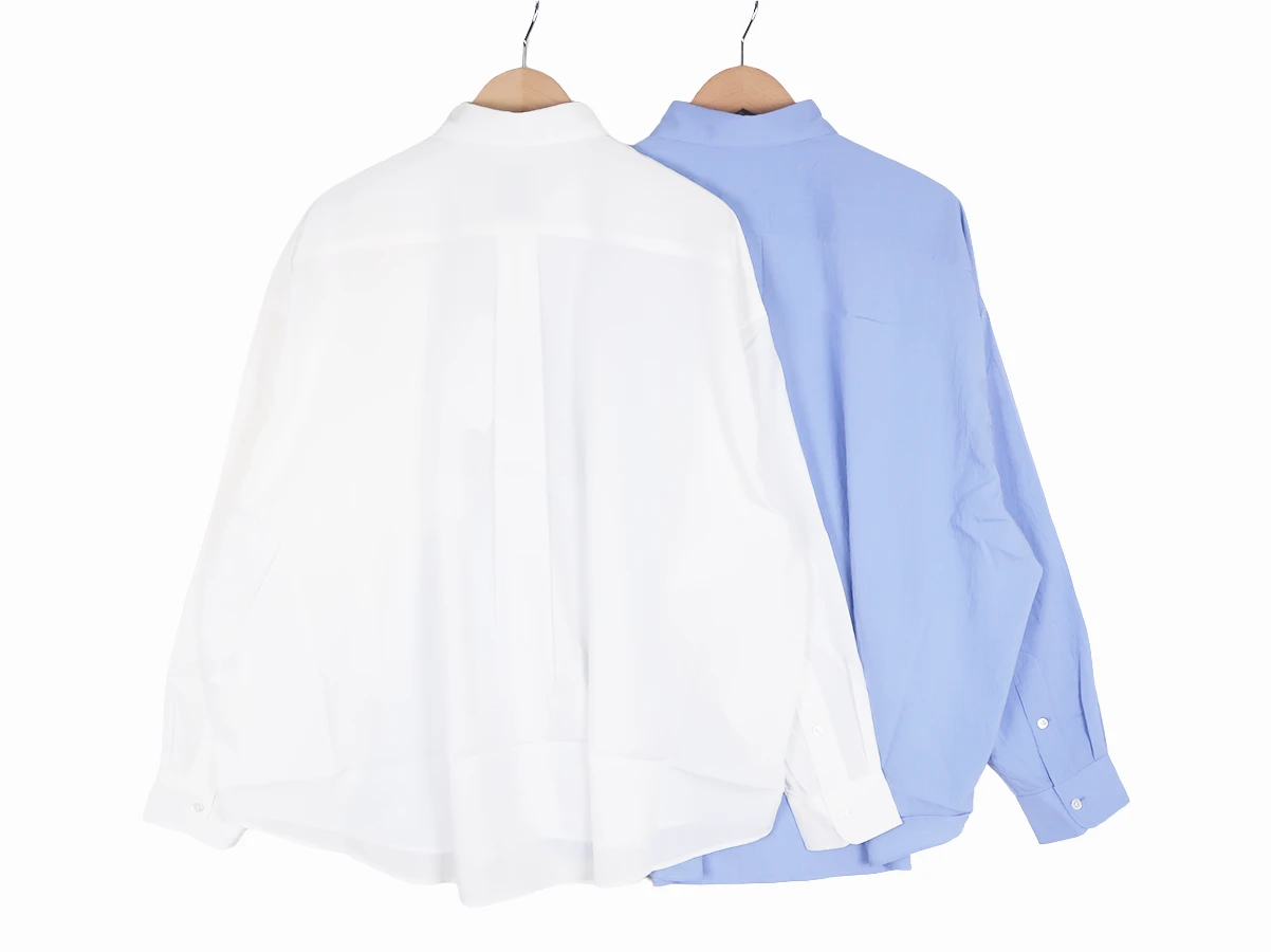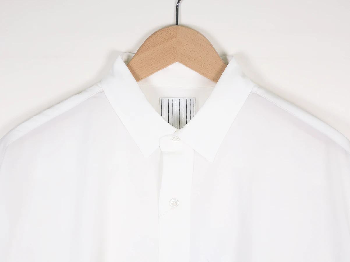 素材は環境配慮型素材「ECOVERO」をつかったナチュラルな表情感のある軽量タイプライターを使用。艶のあるしなやかなハリ感とドライでさらりとした風合いの着心地の良い快適な素材です。