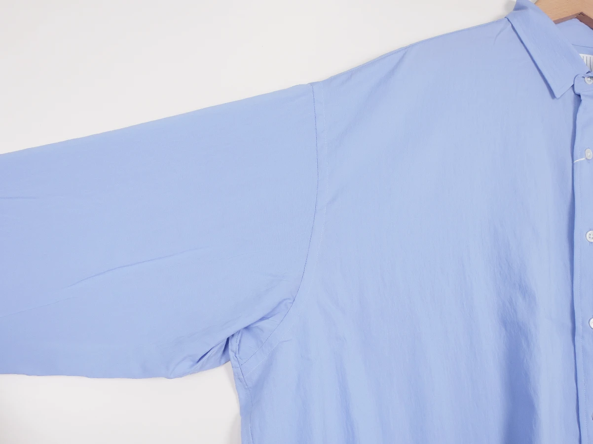 SFC定番のビッグシルエットのSFC SHIRT。生地の落ち感を考慮して、従来よりも袖巾やアームホールをコンパクトに調整して綺麗なシルエットが出るようにUPDATEしております。