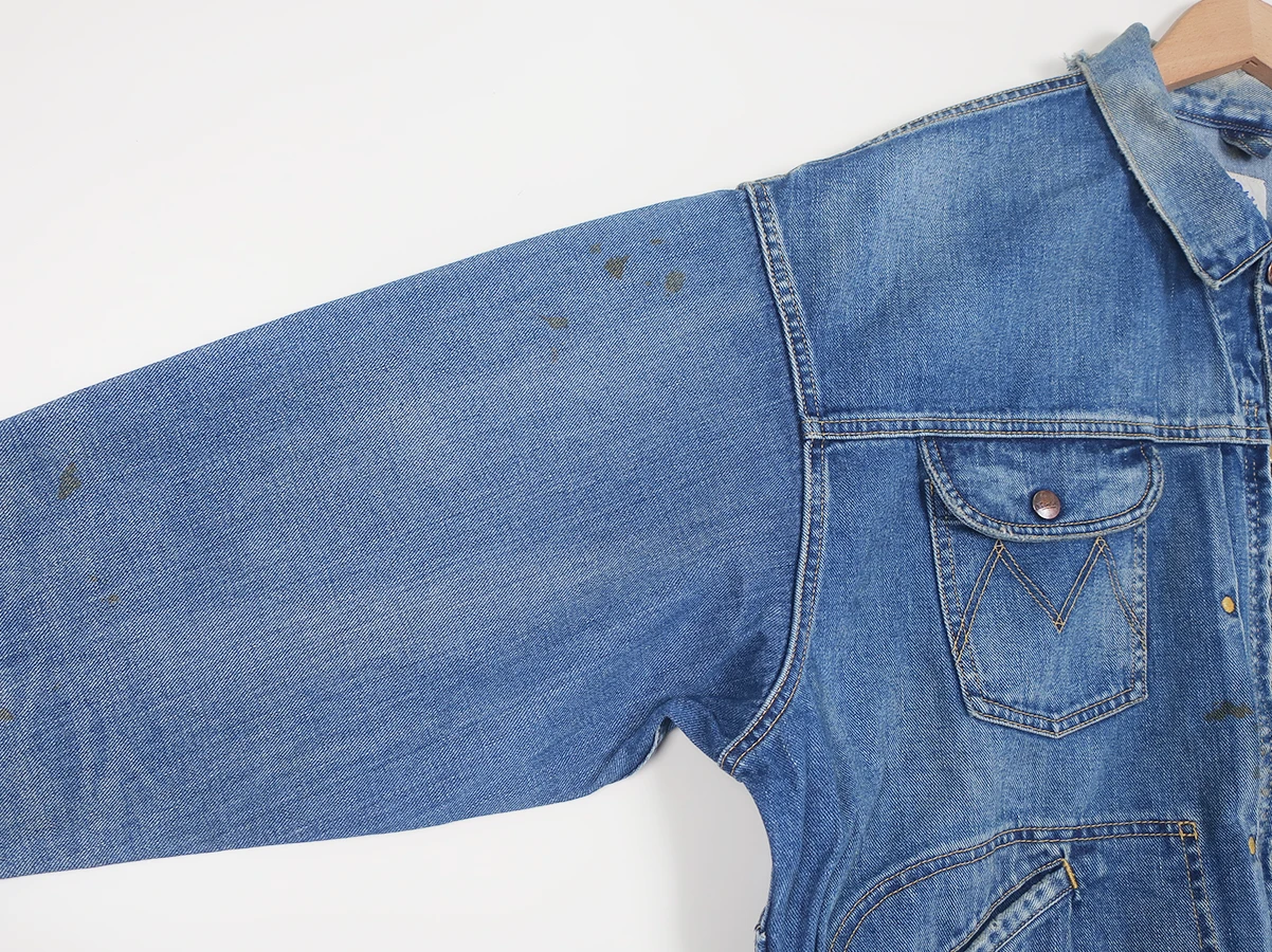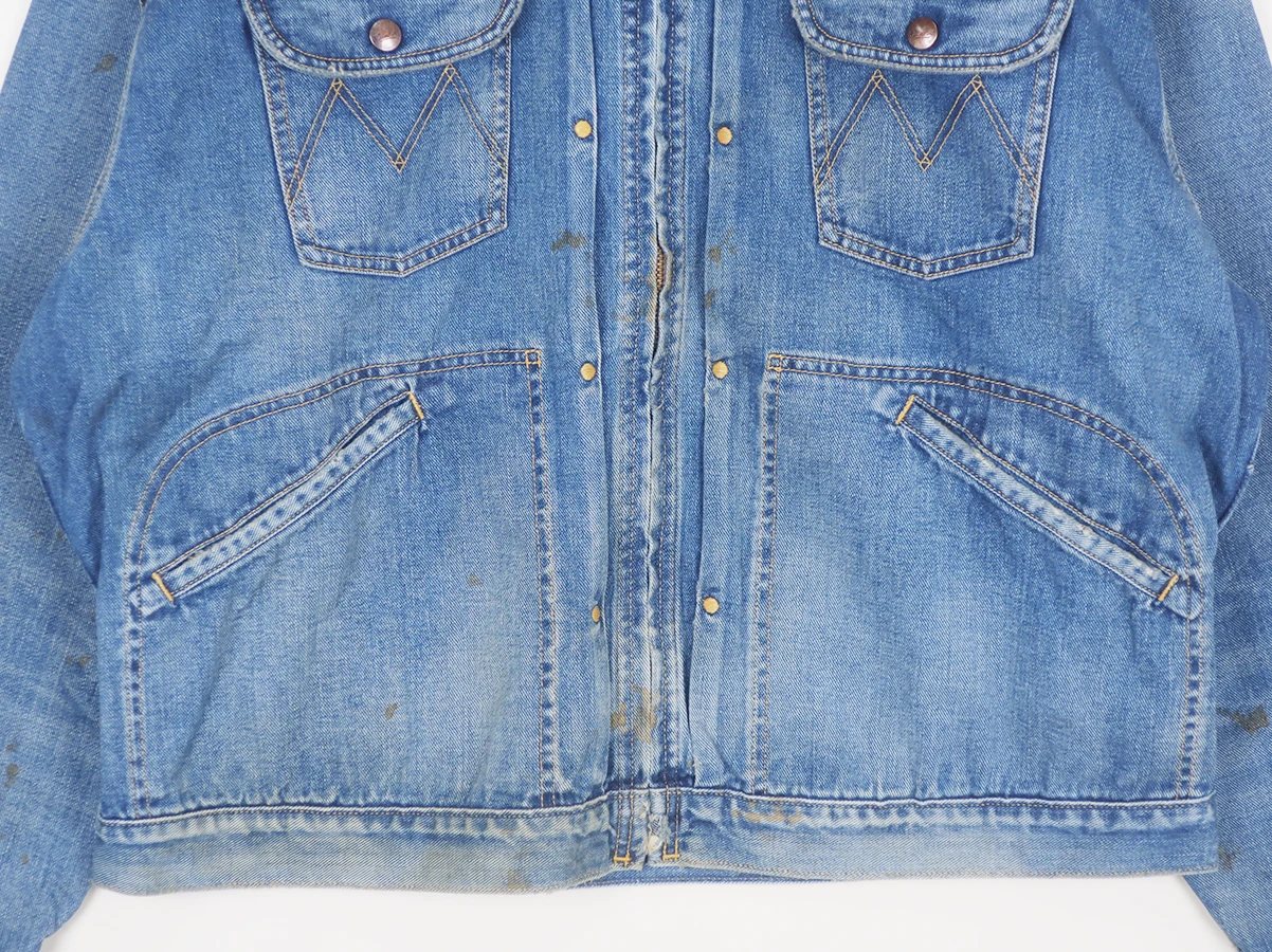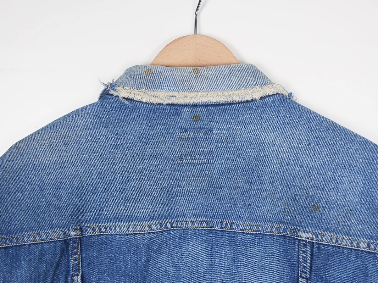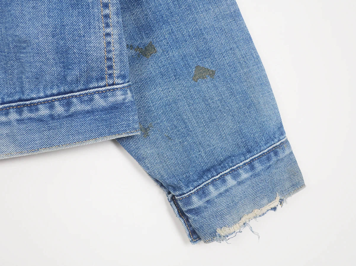 SAINT Mxxxxxxらしい退廃的なヴィンテージムードをデニムで表現した一着。程よく色の抜けたインディゴに加工を重ね、長年着込んだかのような空気感に仕上げています。