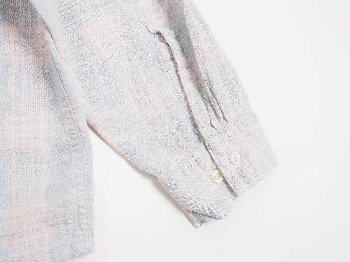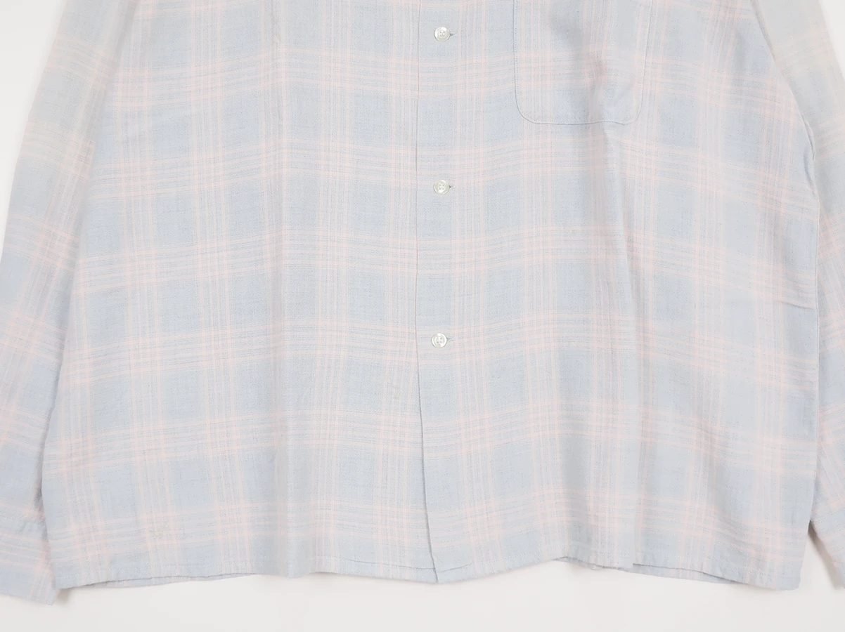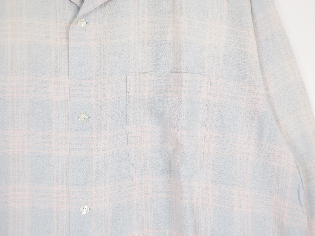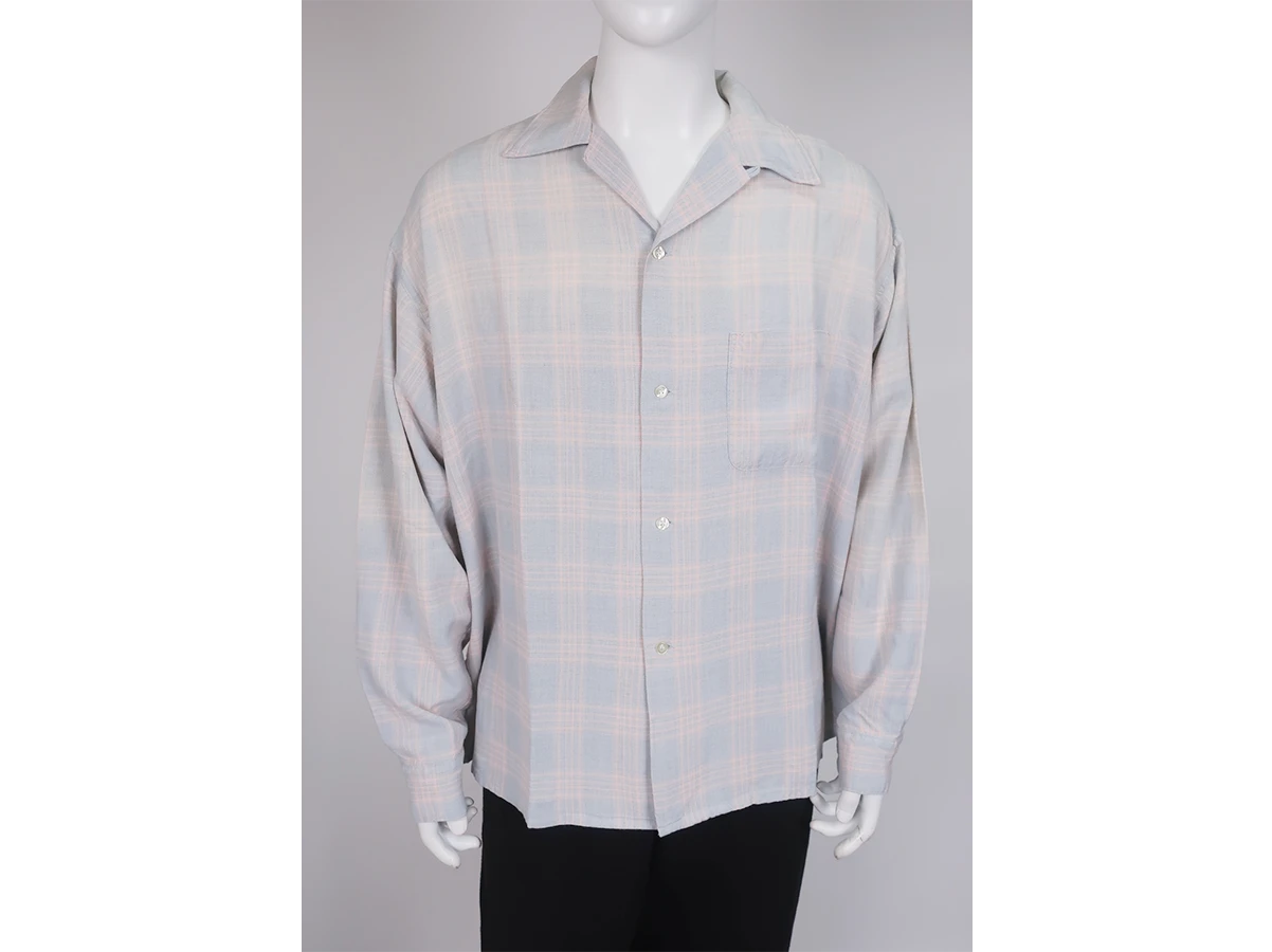 レーヨン素材を使用した淡いチェック柄が特徴的なシャツ。着古したような風合いに仕上げた一着。