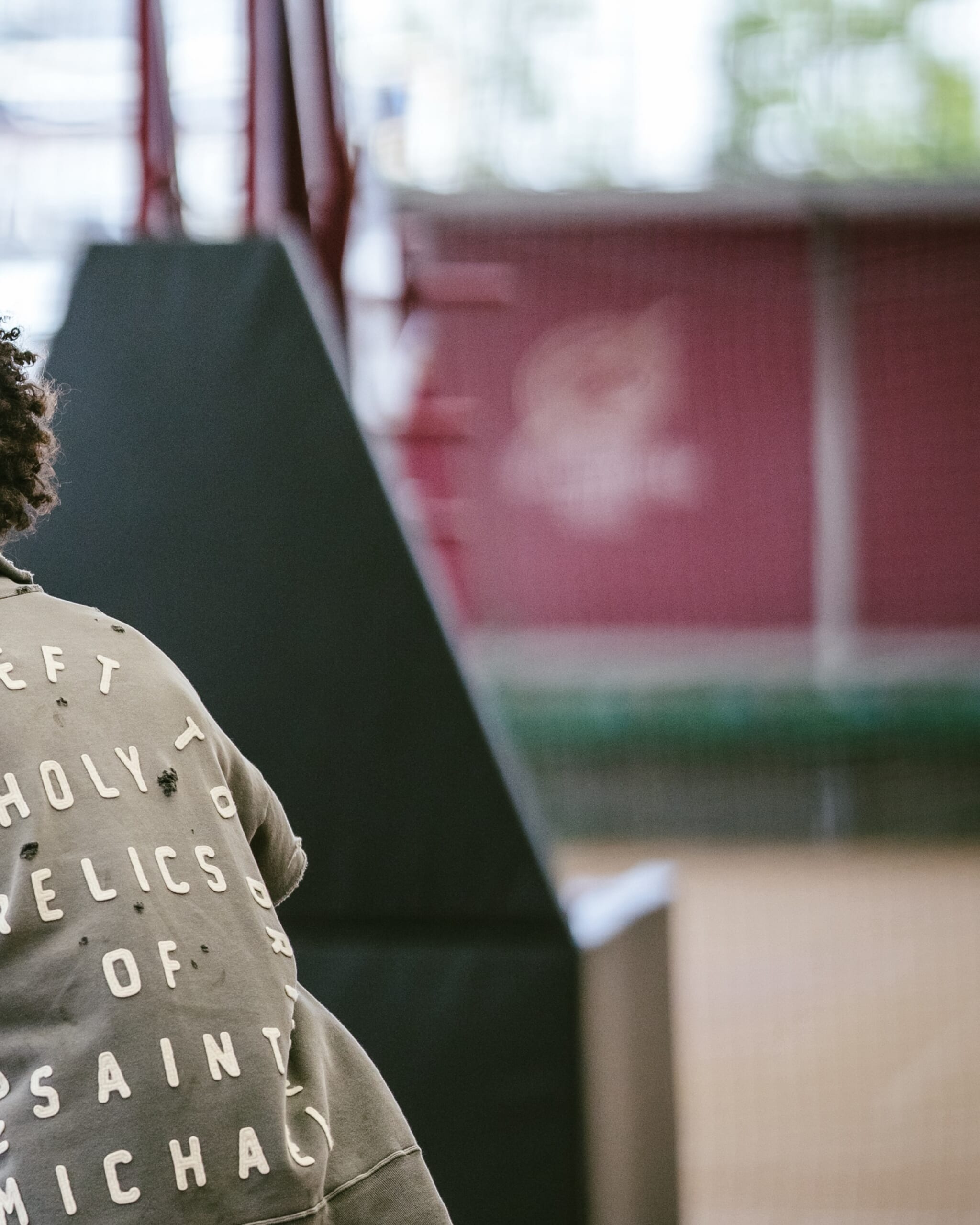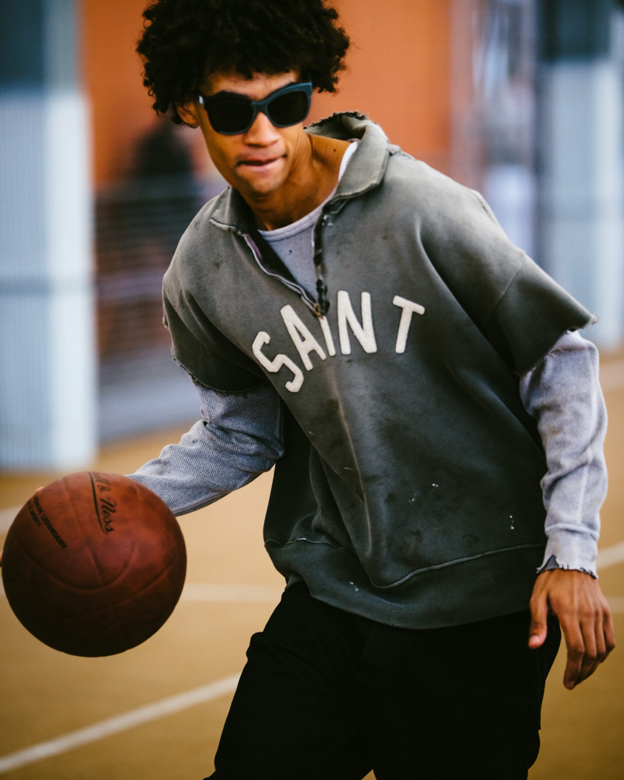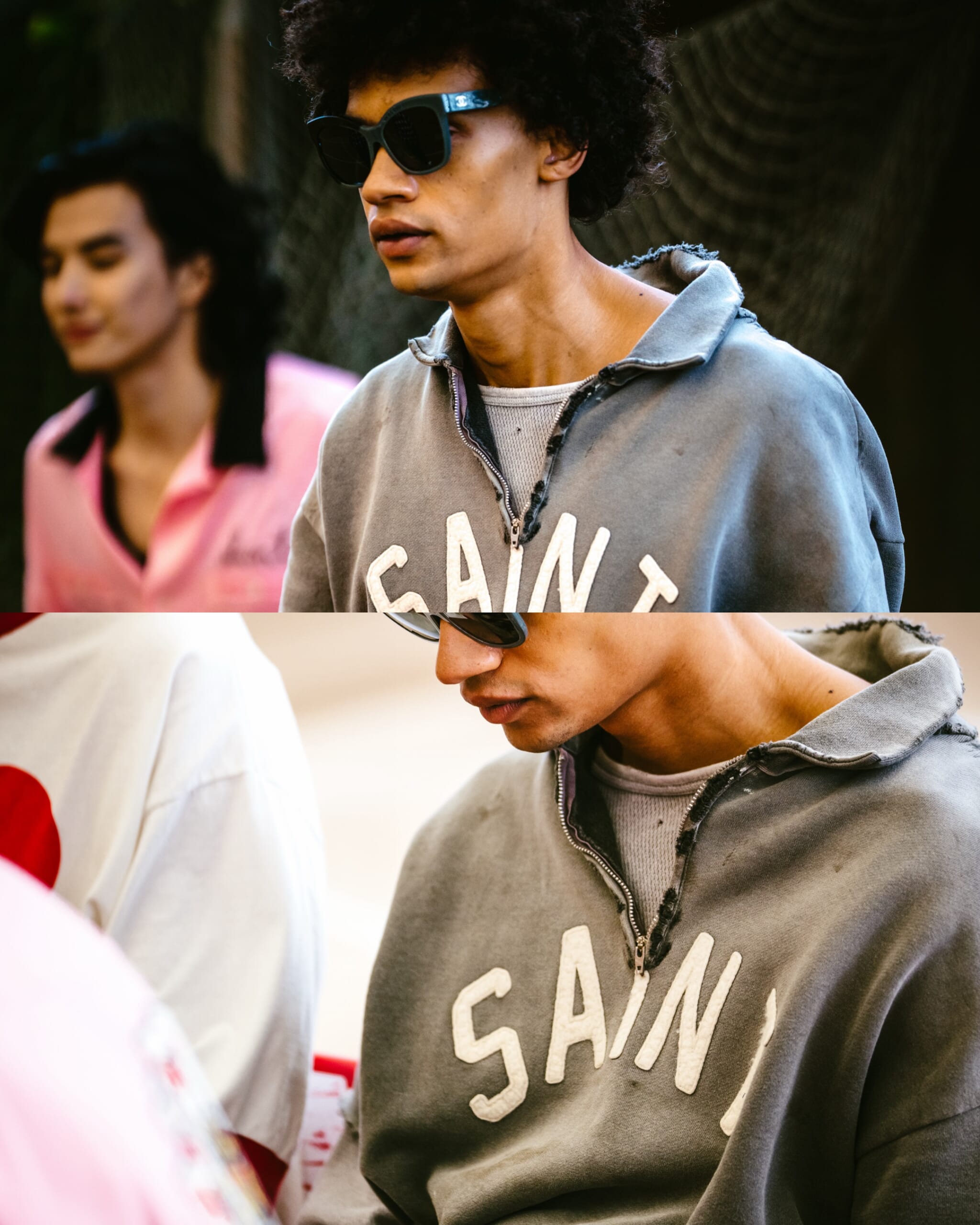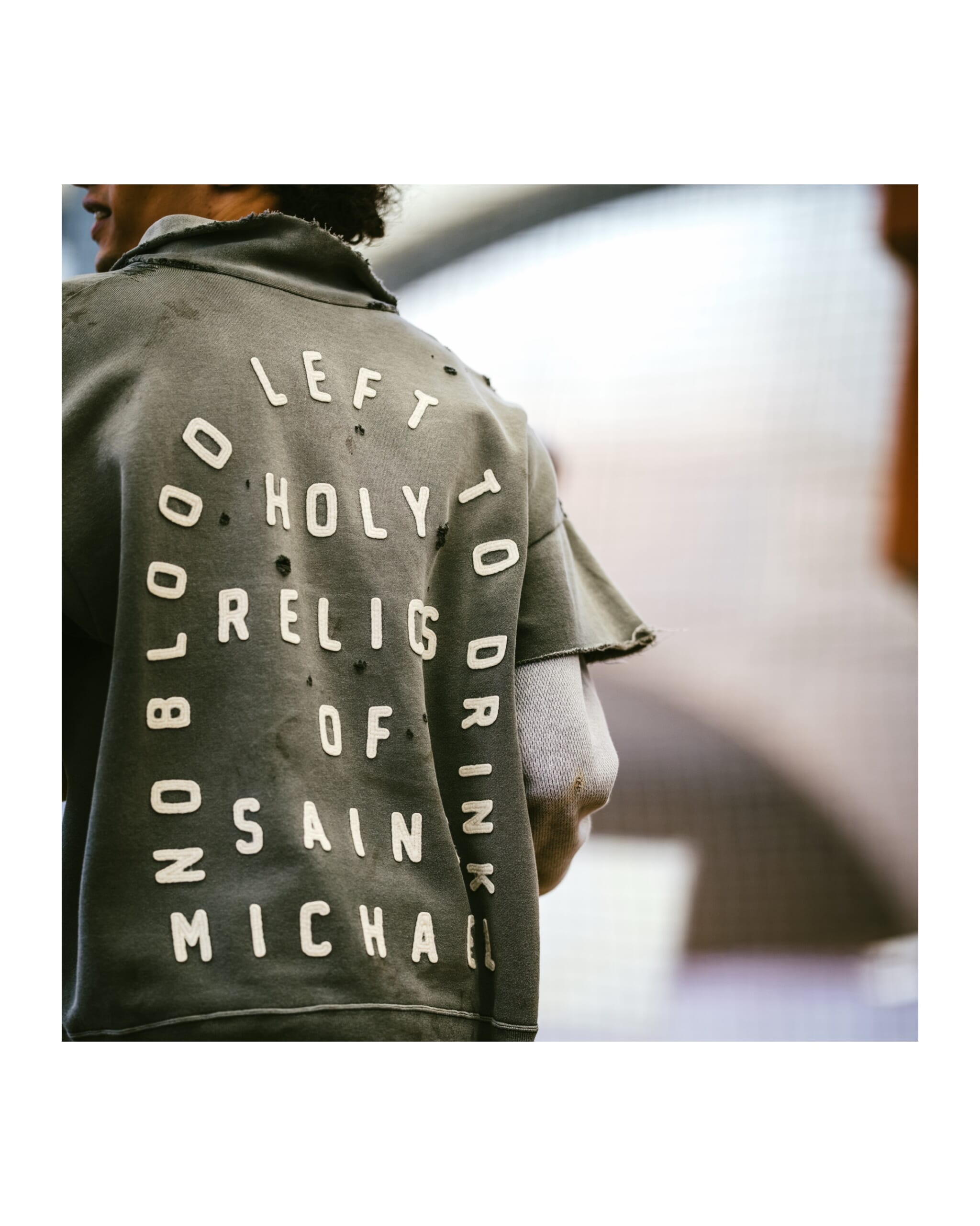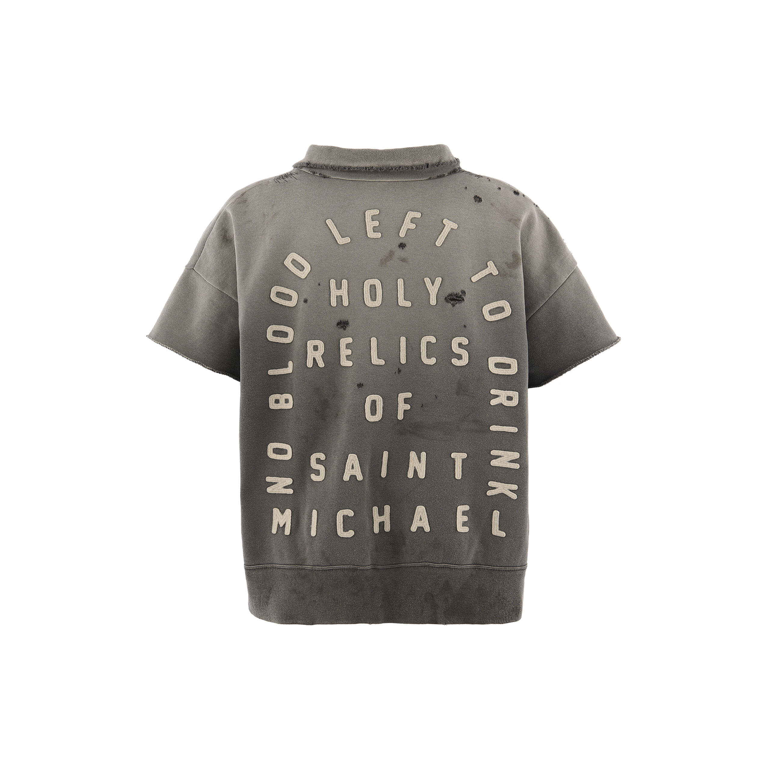 コットンのスウェット生地を使用したハーフジップ仕様のショートスリーブスウェット。フロントにはSAINTロゴ、背面にはメッセージ性のあるレタリングをワッペンで大胆に配置。立体感のある表情に仕上げています。