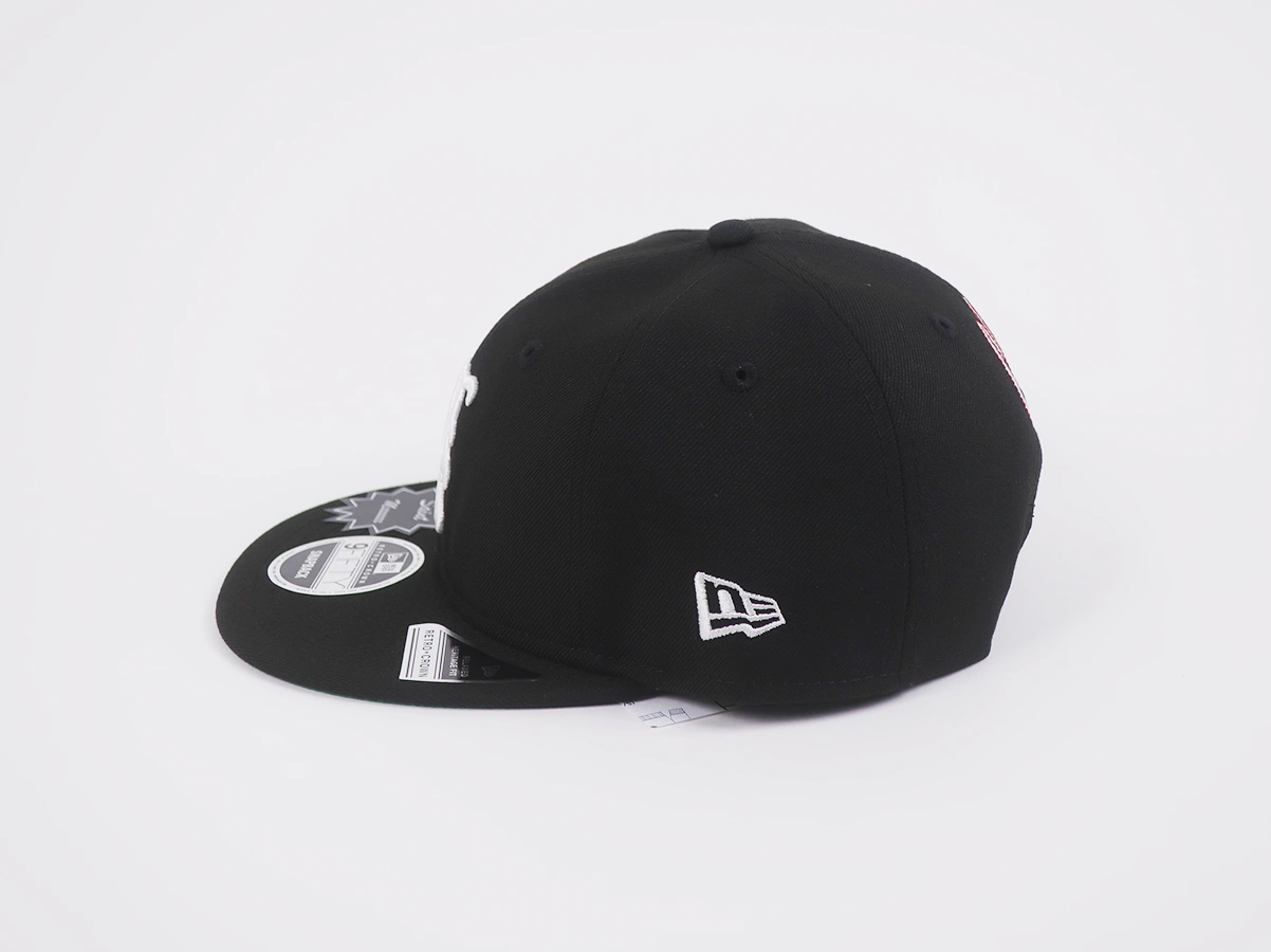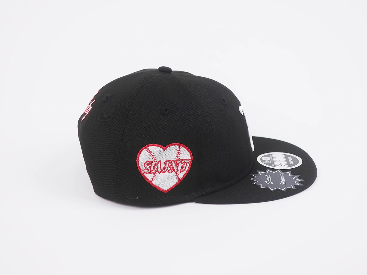 フロントには本コラボレーションを象徴的するロゴをNEW ERAならではの立体感のある刺繍で配置。さらに、つば部分にはSAINT Mxxxxxxのステッカーを配し、細部に至るまで両ブランドのアイデンティティを反映しています。