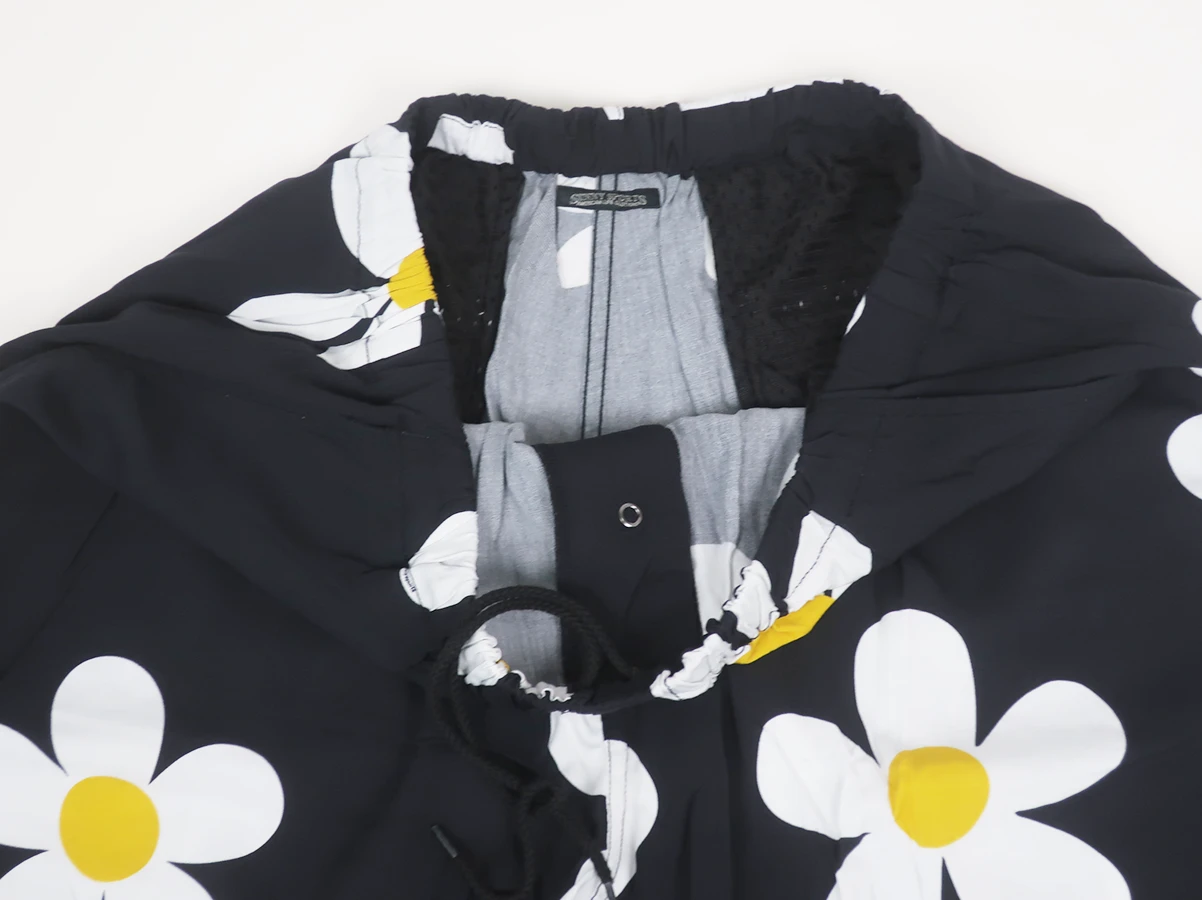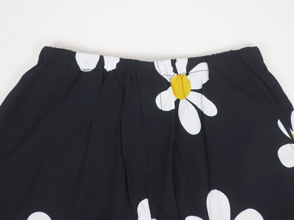 レーヨン生地を使用した、総柄のショーツ。ブラックベースに大ぶりのフラワープリントを落とし込み、スタイリングの主役になる存在感のある一本に仕上げています。