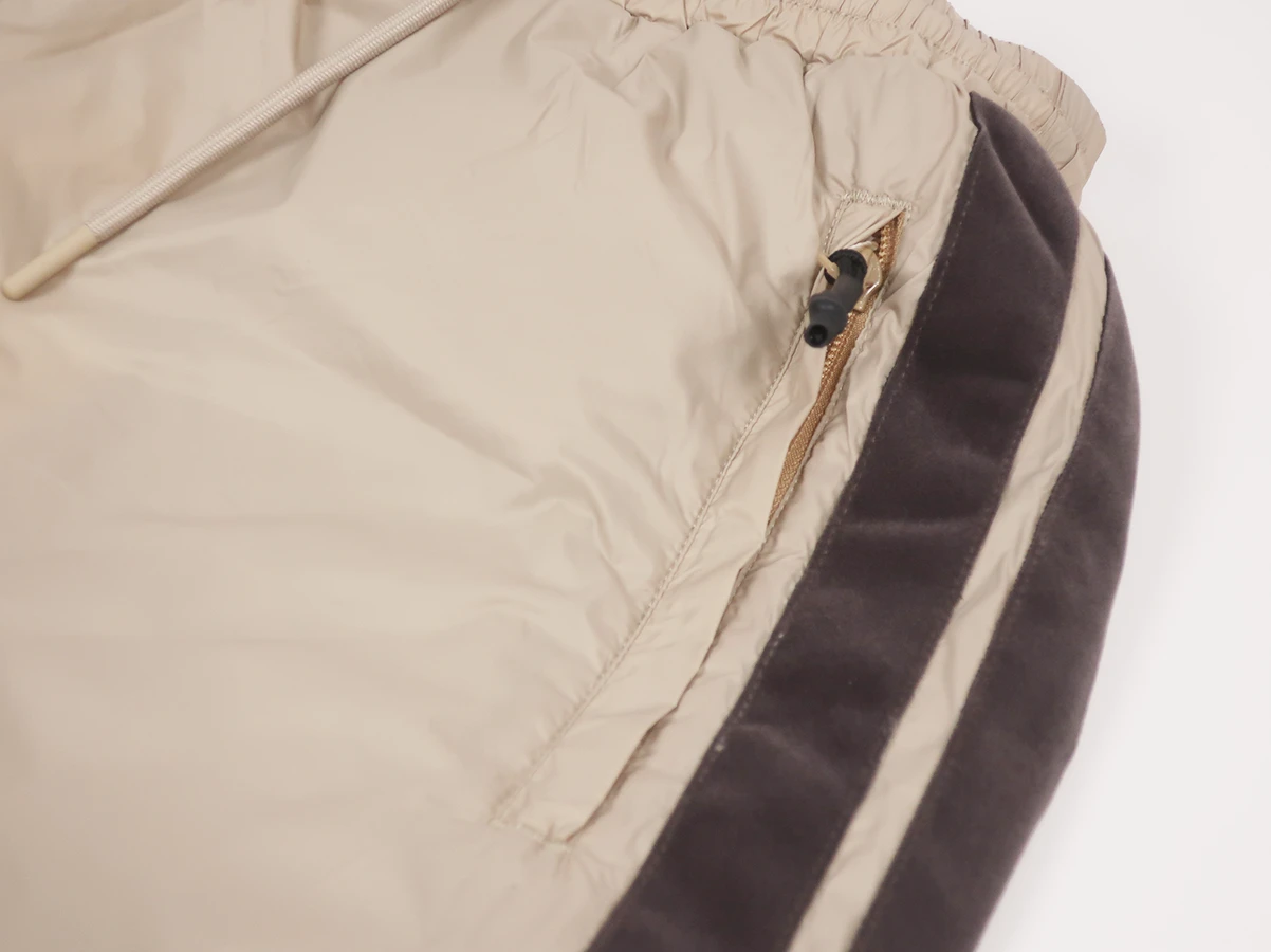 ジャージタイプのリバーシブルトラックダウンパンツ。