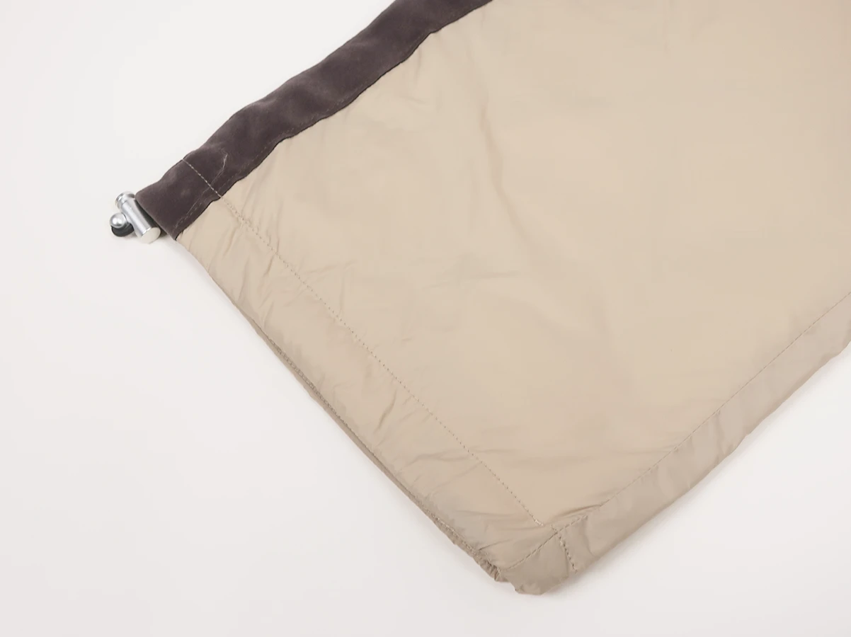素材 | 表地:ナイロン100% 裏地:ナイロン100% 別布:基布 ポリエステル100% 別布:フロック部分 ポリエステル/ナイロン 中わた:ダウン95% フェザー5% |