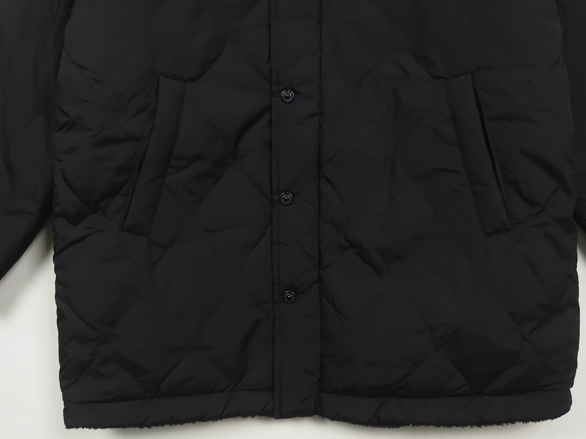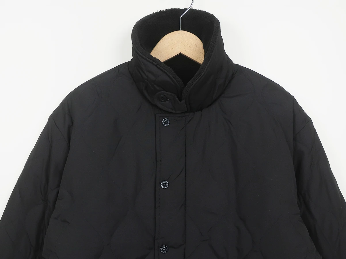 裏側には、毛羽感のあるボアを採用し、防寒性も担保。また、両脇のスリットは、可動域が増え動きやすさをサポートし、 ボトムのポケットに手も入れやすく、重ね着を楽しんでいただける仕様としました。暖かく着応えのある、ミリタリーテイストのダウンです。