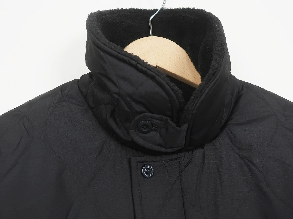 程良いミドルロング丈、「N-1」タイプのミリタリーダウン×ボアジャケット。表側には、丈夫なリップストップ生地を使用し、保温性に優れた800FPのダウンを採用、ヘチマキルトのダウンステッチでミリタリー感を演出。