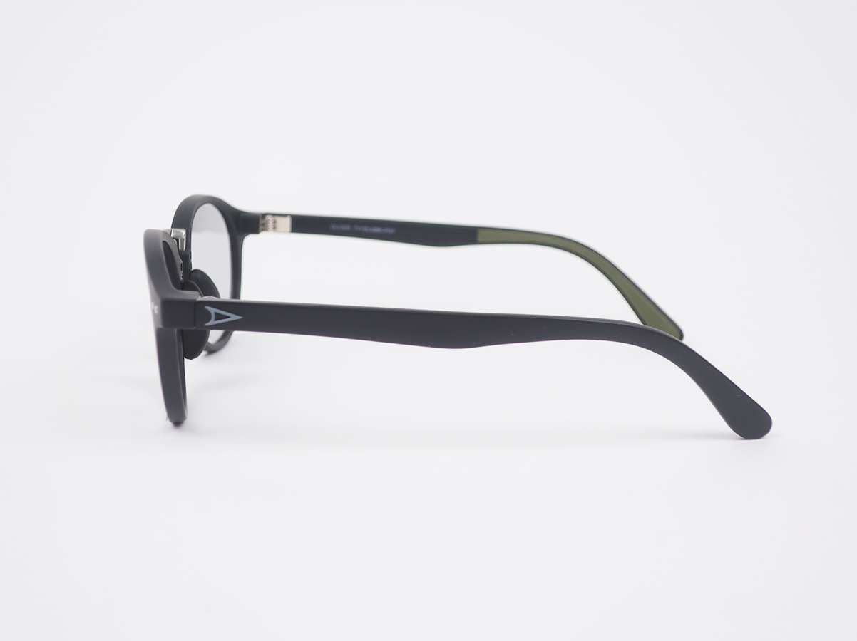 天地を抑えたボストンタイプのレンズシェイプにメタルブリッジを組み合わせて、新開発の細身のナローテンプルを採用。