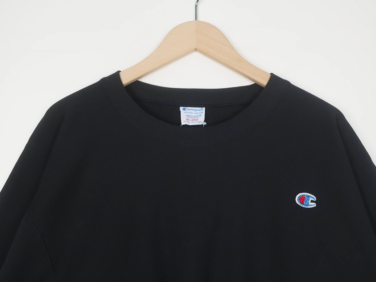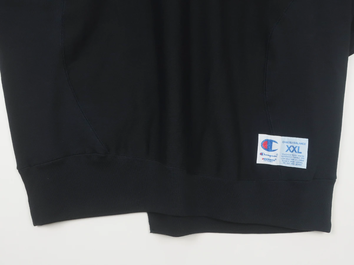 裾にはワッペンをセット。バックにはビッグタグを大胆に配置。Championのタフなボディと、UNDERCOVERの装飾性・アート性が融合した一着。ストリート、モード、どちらの文脈にも振れる存在感を持っています。