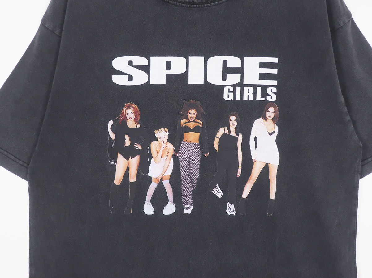 SPICE GIRLSのメンバーグラフィックをフロントに配した半袖Tシャツ。大胆なロゴとフォトプリントを組み合わせた存在感のあるデザイン。