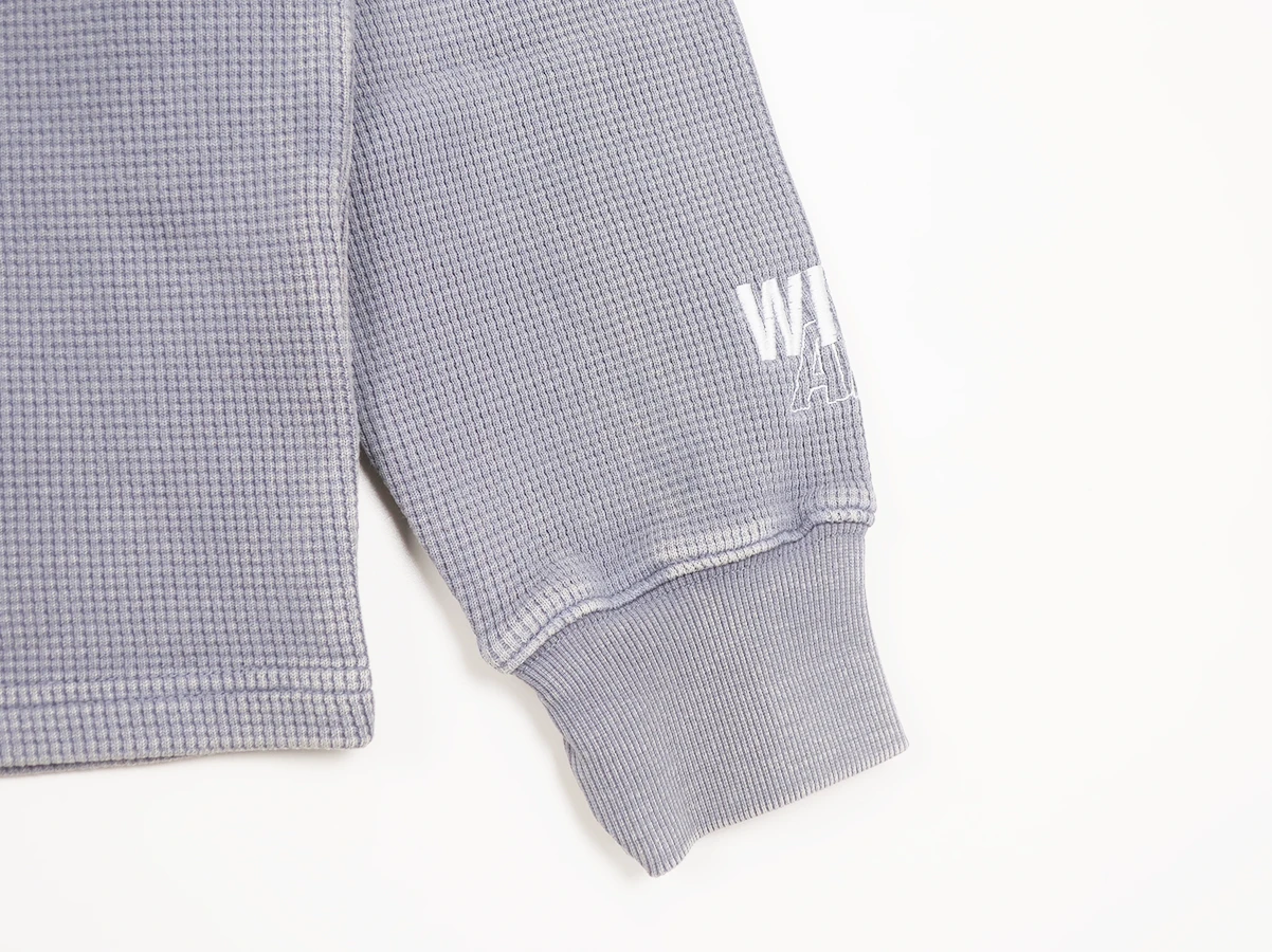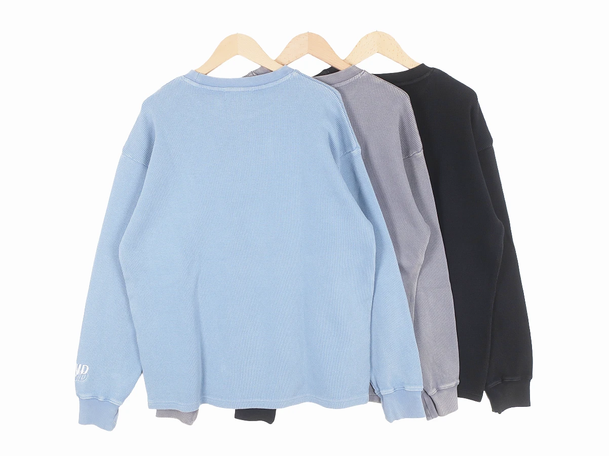 WIND AND SEAらしいミニマルなロゴ表現と、存在感のあるヘビーワッフル素材を組み合わせたロングスリーブTシャツ。