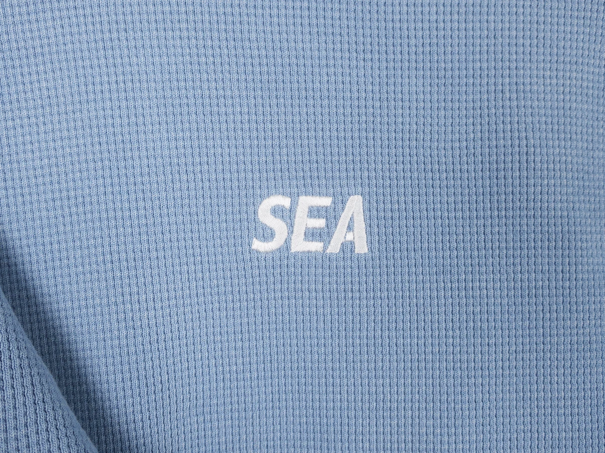 胸元には控えめな「SEA」ロゴ、袖口にブランドロゴを配置し、主張しすぎないバランスの取れたデザインです。