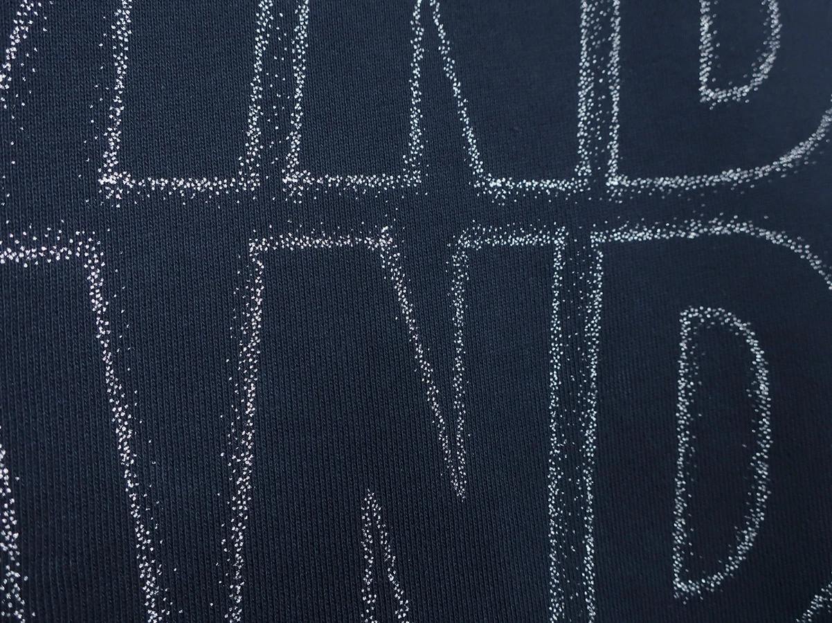 フロントにブランドロゴをメタリックなラメで表現したクルーネックスウェット。