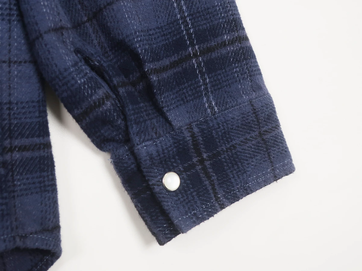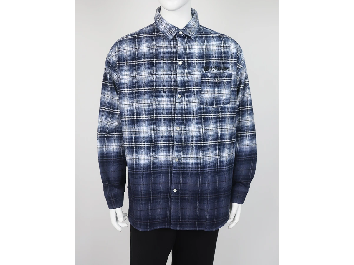 グラデーションチェック柄が印象的なフランネルシャツ。柔らかなコットンフランネル素材を使用し、程よい起毛感と暖かみのある風合いが特徴です。